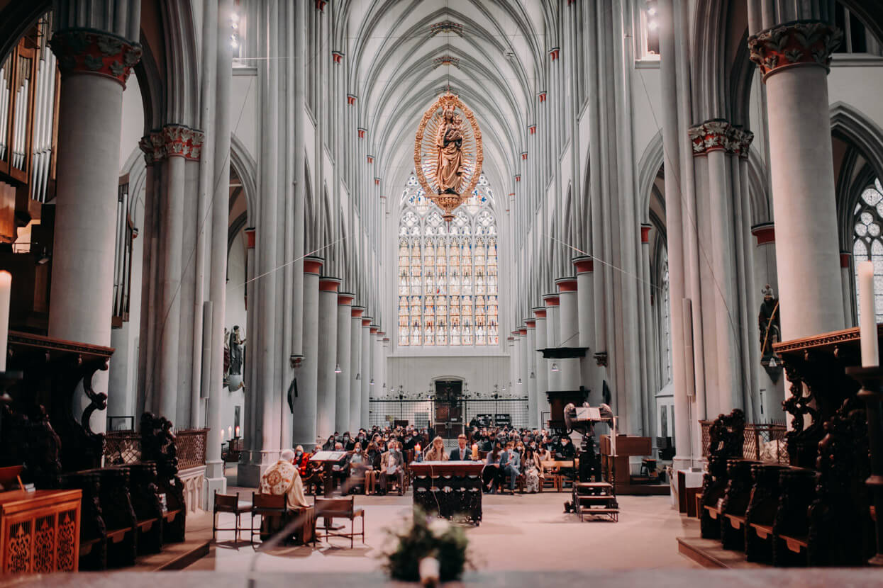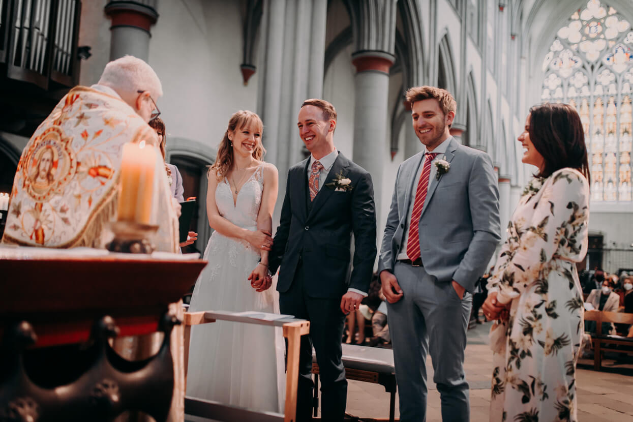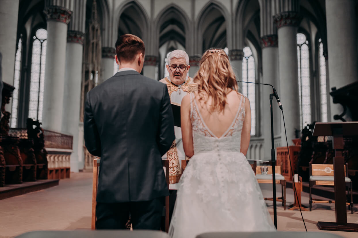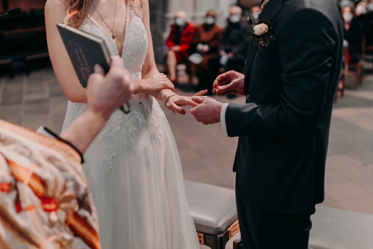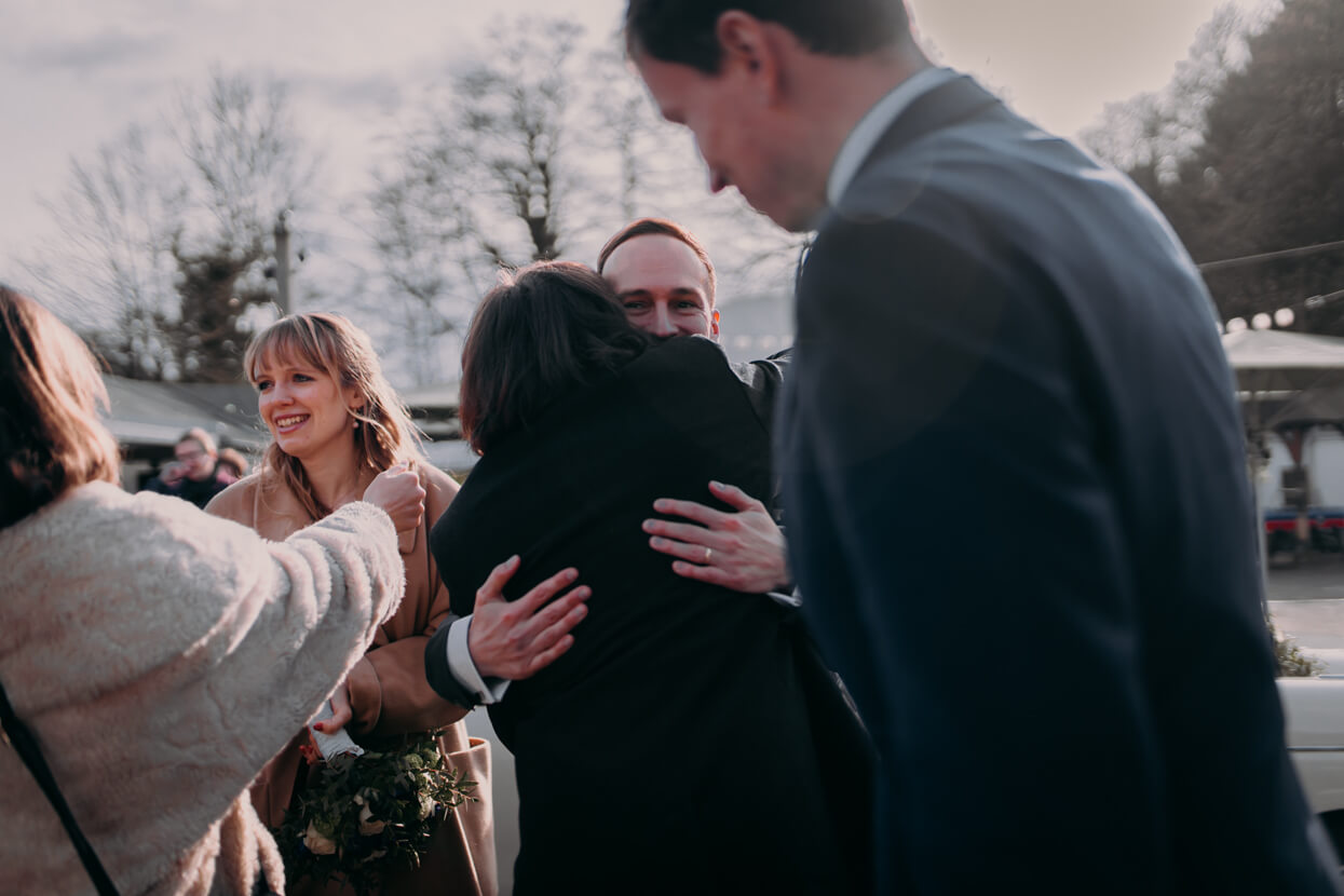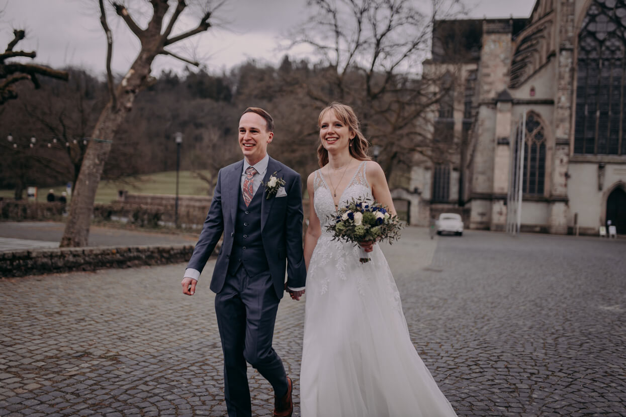 Wow, was ein toughes Paar! Als die beiden Anfang April im Altenberger Dom in Bergisch Gladbach geheiratet haben lag auf den Bergen drumherum noch Schnee. Trotzdem haben wir die tolle Kulisse für ein Paarshooting genutzt – ich in dicken Wintersachen und die beiden in ihrem wunderbaren (nur leider nicht besonders warmen) Hochzeitsoutfit. Das nenn ich wahren Einsatz, der mit superschönen Fotos belohnt wurde. Später konnten sich Kim und David beim traditionellen Baumstammsägen wieder aufwärmen und anschließend mit all ihren Lieben in der tollen Atmosphäre des Alten Schwimmbads ausgelassen feiern. Danke, dass ich Euch begleiten durfte – es hat mega Spaß gemacht!